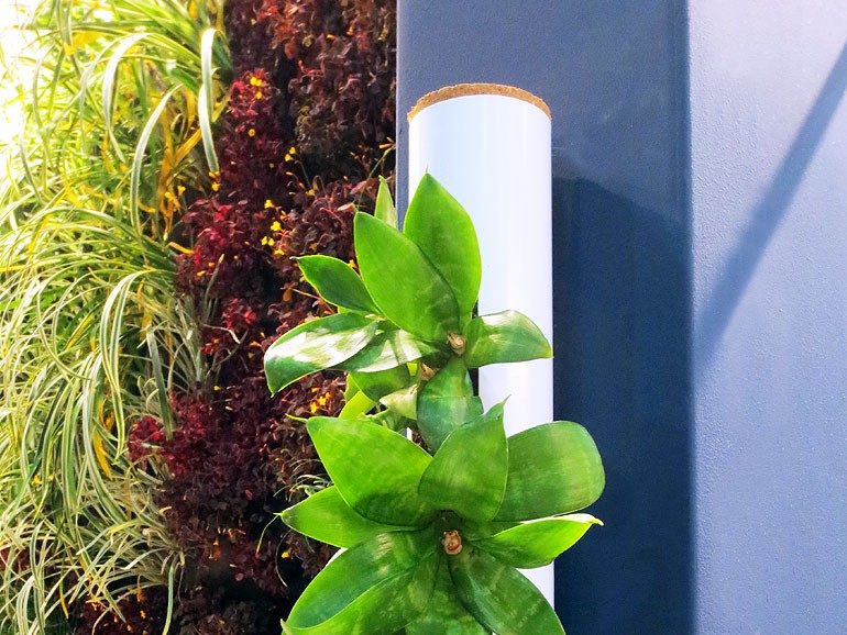 Para armar una pared vegetal, se conforma una estructura sobre el paramento existente donde luego se vinculan los módulos con las plantas. Esta estructura logra que los módulos queden separados unos cinco centímetros de la pared. “Al no tener contacto la pared y con el módulo, no existe la posibilidad de humedad”, aclara Fejes.